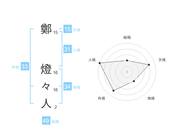 鄭 燈々人さんの外格は33画の4点!