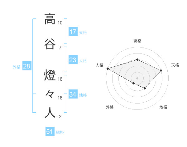 高谷 燈々人さんを姓名の画数から五運を鑑定