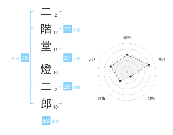 二階堂 燈二郎さんを姓名の画数から五運を鑑定