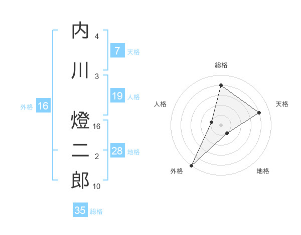 内川 燈二郎さんを姓名の画数から五運を鑑定