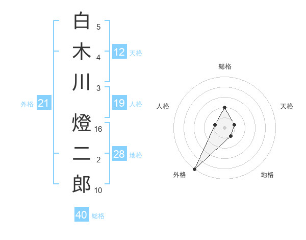 白木川 燈二郎さんを姓名の画数から五運を鑑定
