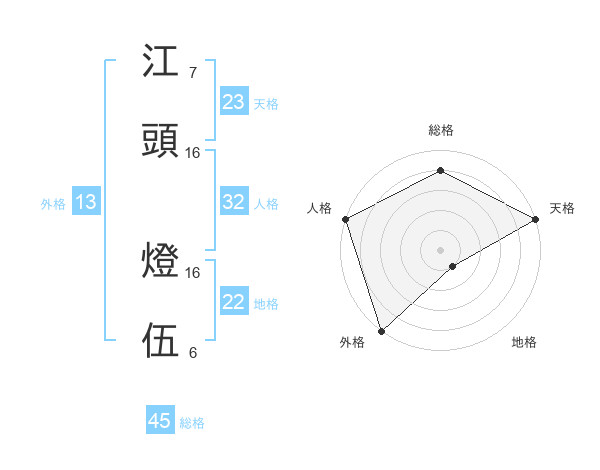 江頭 燈伍さんを姓名の画数から五運を鑑定