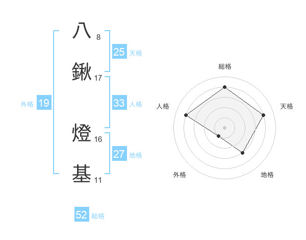 八鍬 燈基さんの総格は52画の4点!