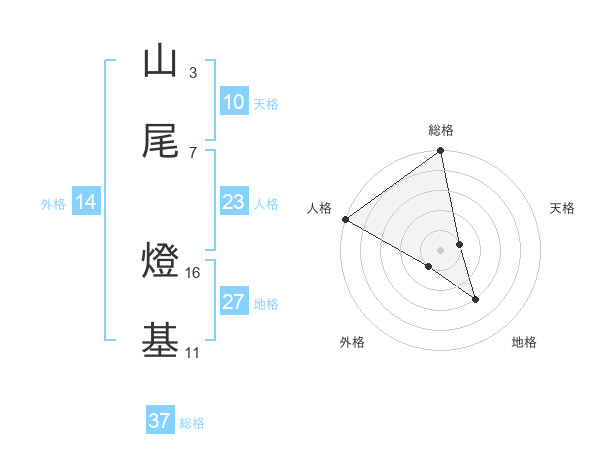 山尾 燈基さんを姓名の画数から五運を鑑定