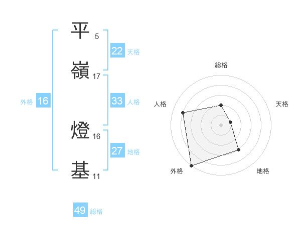 平嶺 燈基さんを姓名の画数から五運を鑑定