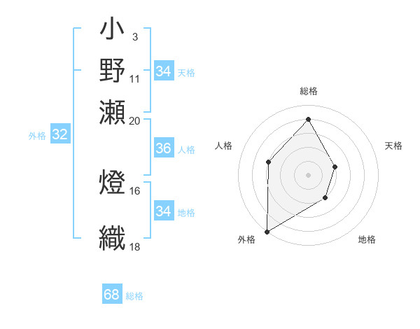 小野瀬 燈織さんの総格は68画の4点!