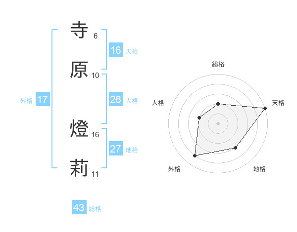 寺原 燈莉さんを姓名の画数から五運を鑑定