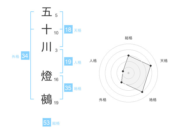 五十川 燈鵺さんを姓名の画数から五運を鑑定