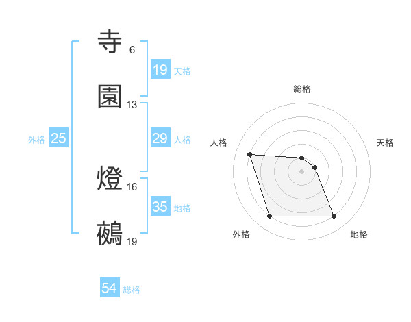 寺園 燈鵺さんの外格は25画の4点!