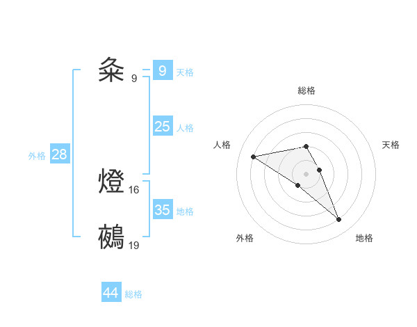 粂 燈鵺さんの総格は44画の2点!