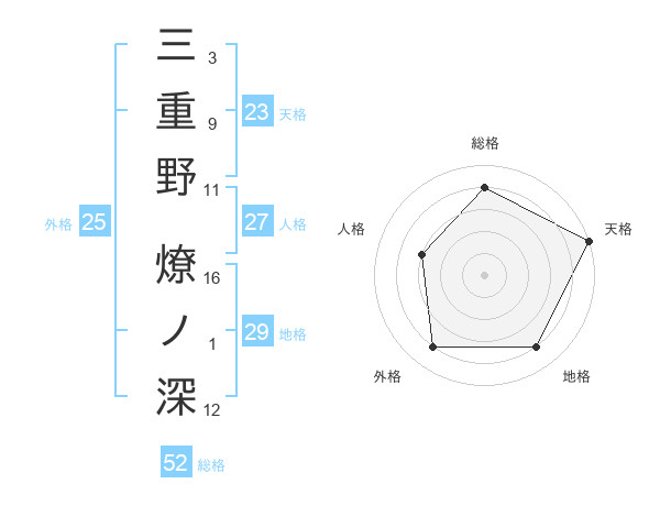 三重野 燎ノ深さんを姓名の画数から五運を鑑定