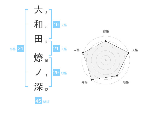 大和田 燎ノ深さんを姓名の画数から五運を鑑定