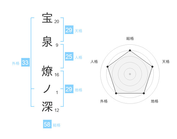 宝泉 燎ノ深さんを姓名の画数から五運を鑑定