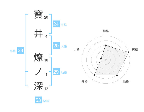 寶井 燎ノ深さんの総格は53画の3点!
