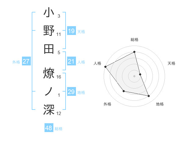 小野田 燎ノ深さんを姓名の画数から五運を鑑定