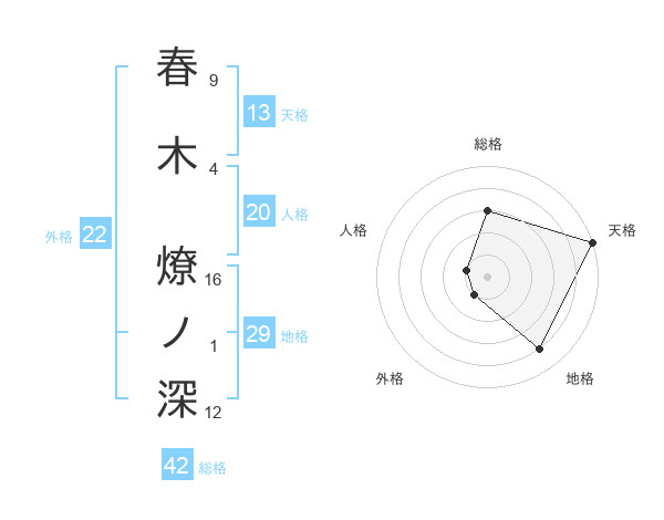 春木 燎ノ深さんを姓名の画数から五運を鑑定