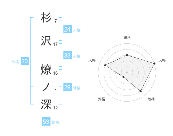 杉沢 燎ノ深さんを姓名の画数から五運を鑑定