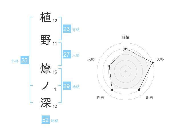 植野 燎ノ深さんを姓名の画数から五運を鑑定