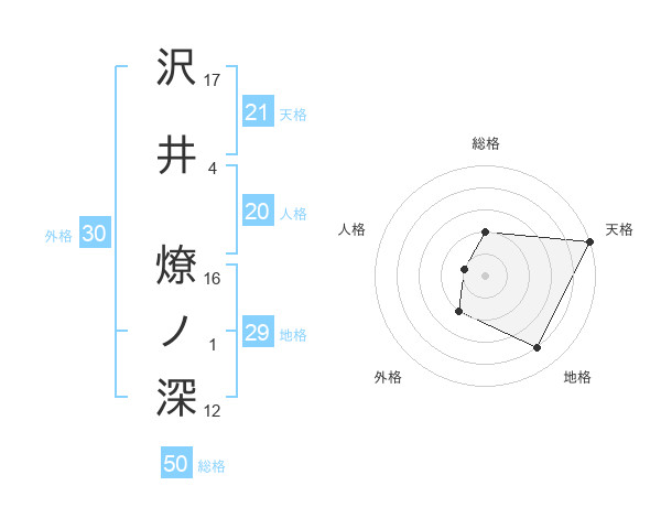 沢井 燎ノ深さんを姓名の画数から五運を鑑定