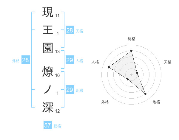 現王園 燎ノ深さんの総格は57画の4点!