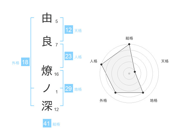 由良 燎ノ深さんを姓名の画数から五運を鑑定