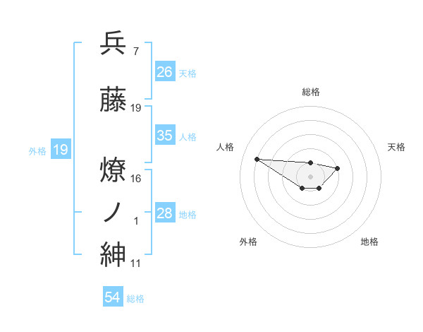 兵藤 燎ノ紳さんの総格は54画の1点!