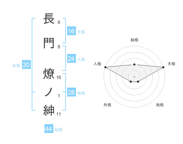 長門 燎ノ紳さんを姓名の画数から五運を鑑定