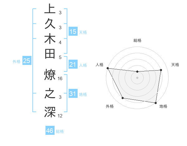 上久木田 燎之深さんの地格は31画の5点!