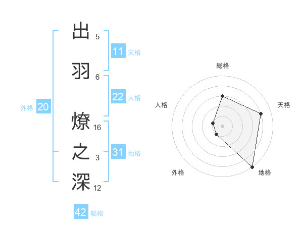 出羽 燎之深さんの地格は31画の5点!