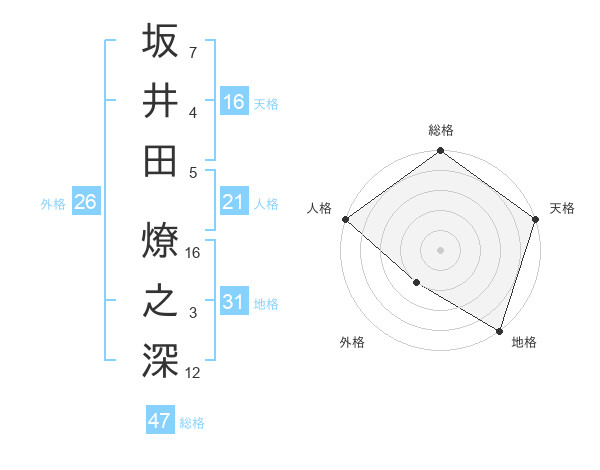 坂井田 燎之深さんの地格は31画の5点!