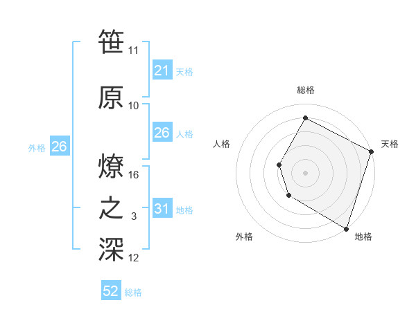 笹原 燎之深さんを姓名の画数から五運を鑑定