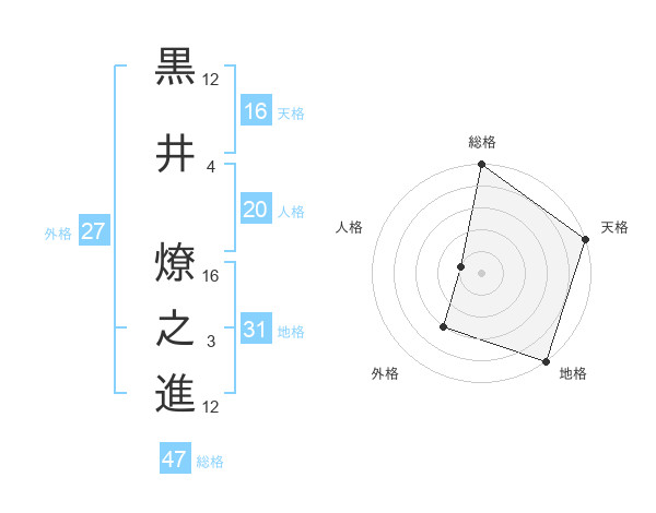 黒井 燎之進さんの総格は47画の5点!