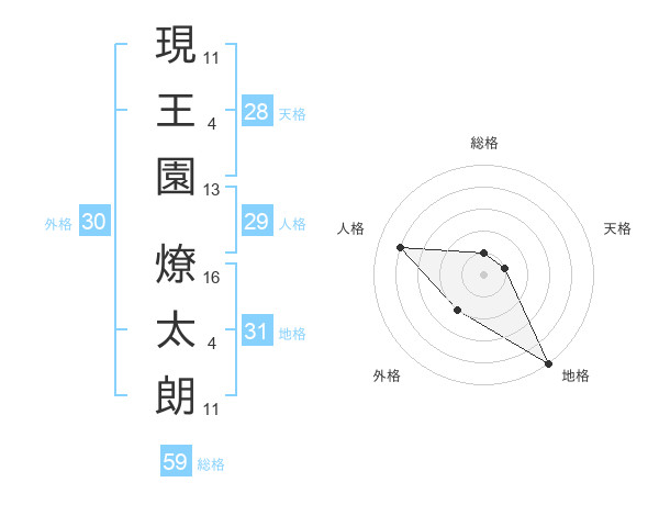 現王園 燎太朗さんの地格は31画の5点!