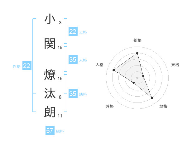 小関 燎汰朗さんを姓名の画数から五運を鑑定