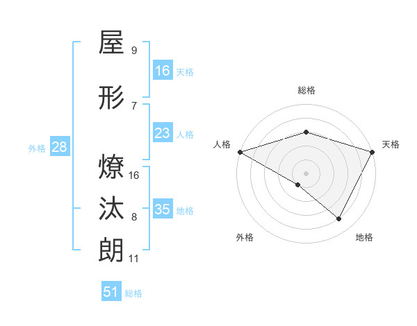 屋形 燎汰朗さんを姓名の画数から五運を鑑定