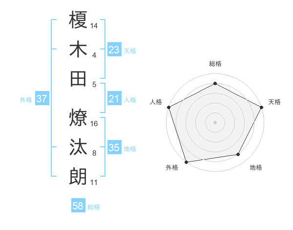 榎木田 燎汰朗さんの天格は23画の5点!