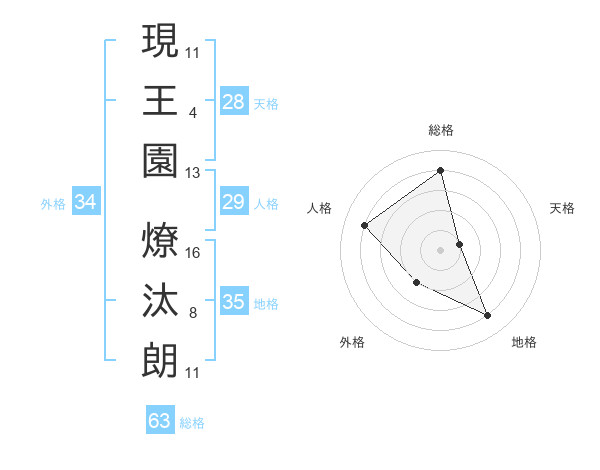 現王園 燎汰朗さんの人格は29画の4点!