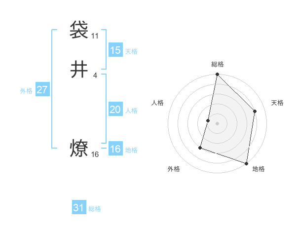 袋井 燎さんの総格は31画の5点!