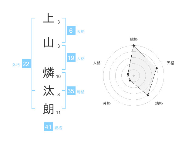 上山 燐汰朗さんを姓名の画数から五運を鑑定