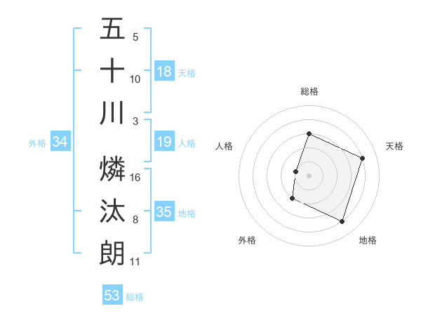 五十川 燐汰朗さんの総格は53画の3点!
