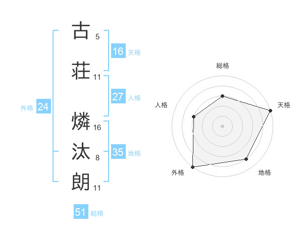 古荘 燐汰朗さんを姓名の画数から五運を鑑定