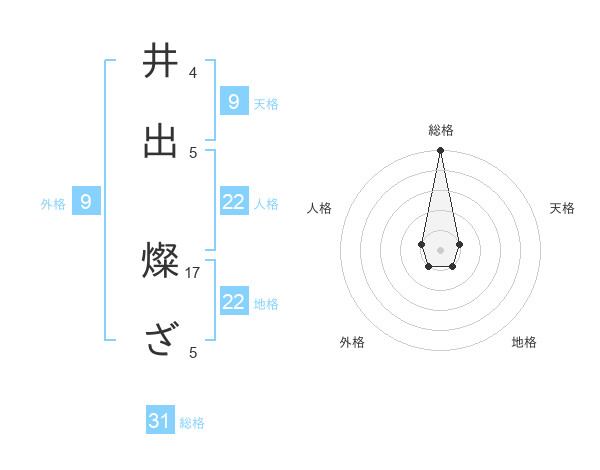 井出 燦ざさんを姓名の画数から五運を鑑定