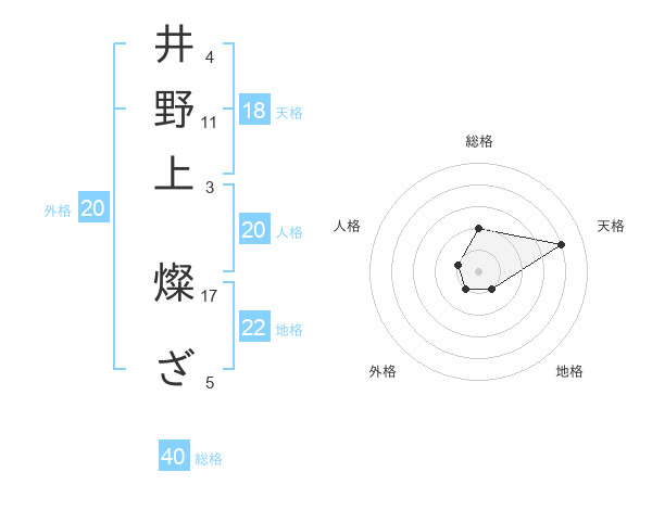 井野上 燦ざさんを姓名の画数から五運を鑑定