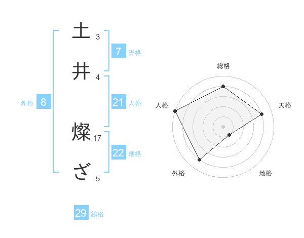 土井 燦ざさんを姓名の画数から五運を鑑定