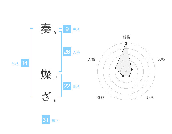 奏 燦ざさんの総格は31画の5点!