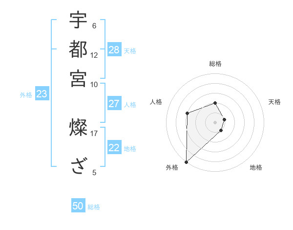 宇都宮 燦ざさんを姓名の画数から五運を鑑定