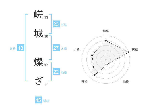 嵯城 燦ざさんを姓名の画数から五運を鑑定