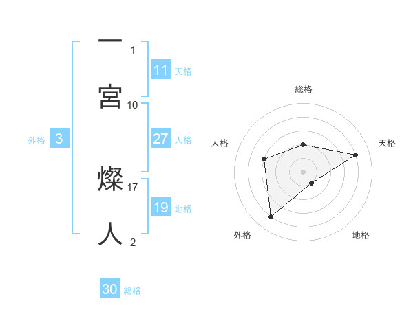 一宮 燦人さんの総格は30画の2点!
