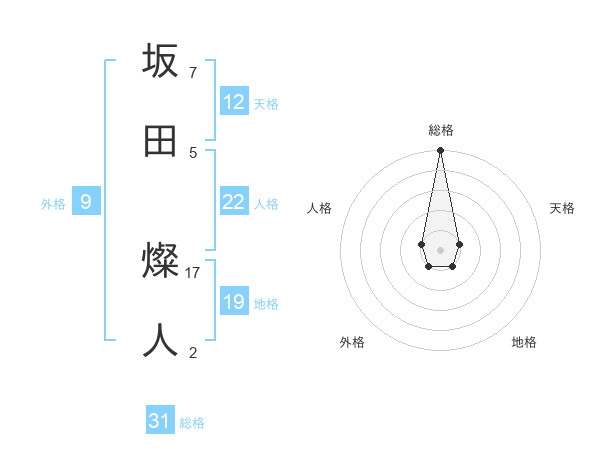 坂田 燦人さんの総格は31画の5点!