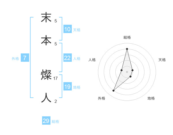 末本 燦人さんの総格は29画の4点!